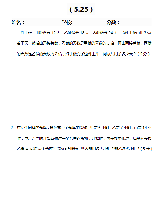 2017年济南山大附中备考每日一练(5.25)