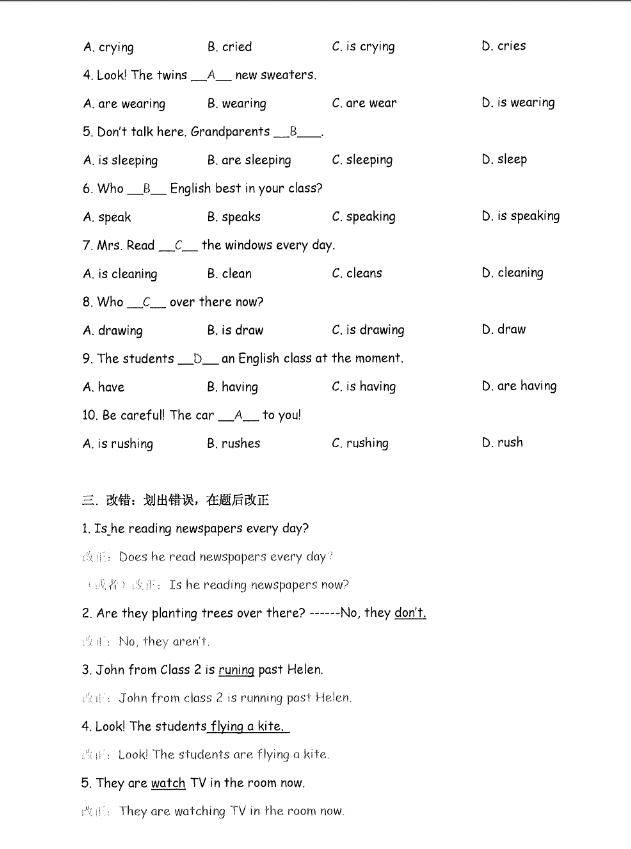 济南小升初英语知识点练习题答案:现在进行时(2)