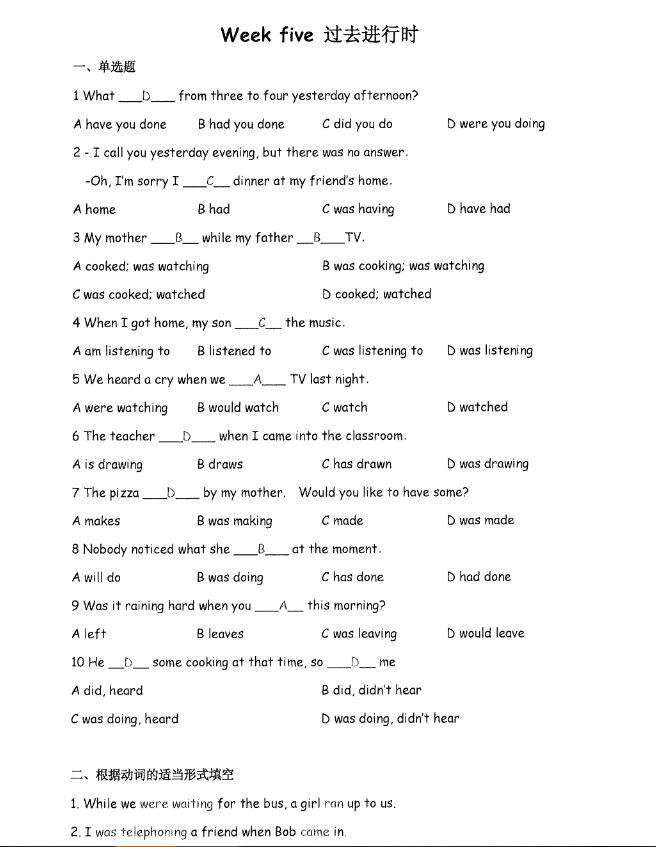 济南小升初英语知识点练习题答案:过去进行时 济南家长帮 2017-06-14 11:41:16 为了方便大家学习英语,更好的进行小升初衔接,下面小编为大家分享一些小升初英语语法知识点,并在文末配上相应习题,希望对大家有所帮助!快来一起练习吧! >>点击查看练习题汇总 首页 上一页 下一页 尾页