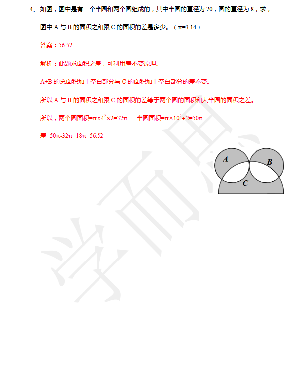 济南小升初几何考点练习题答案:圆与扇形(二)(2)