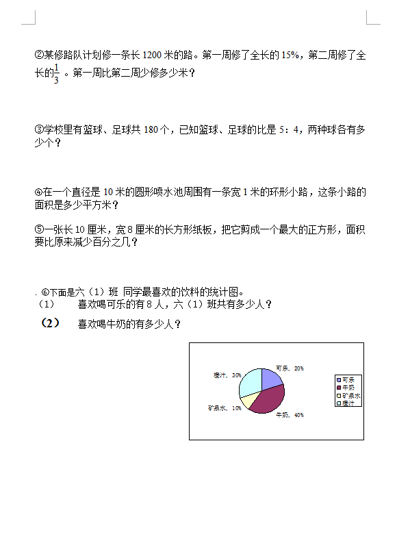 人教版济南小学六年级数学上册期末试题(4)