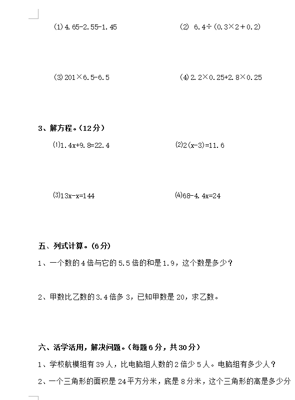 济南人教版小学五年级上册数学期末检测卷(3)
