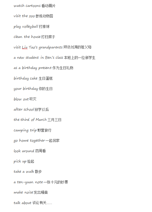 小学八年级英语重要短语汇总