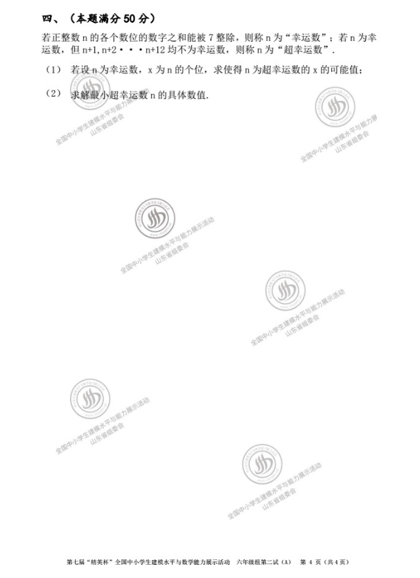 第七届建模考试济南考区六年级二试试题A卷(4)
