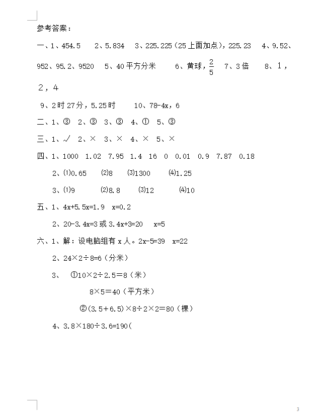 济南小学五年级数学期末试卷及答案(5)