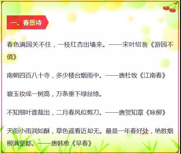济南小学语文期末考试常考诗句分类汇总