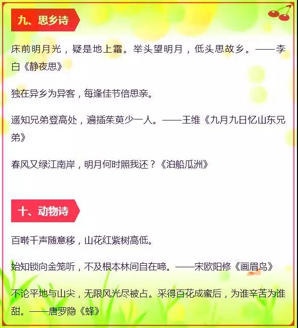 济南小学语文期末考试常考诗句分类汇总(4)
