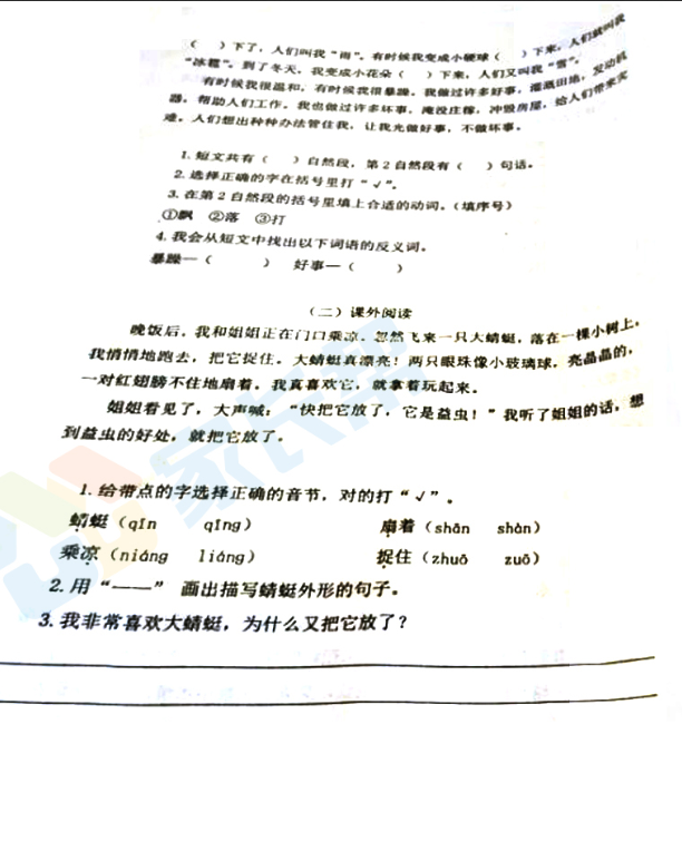 2017-2018济南天桥区二年级语文期末试题(3)