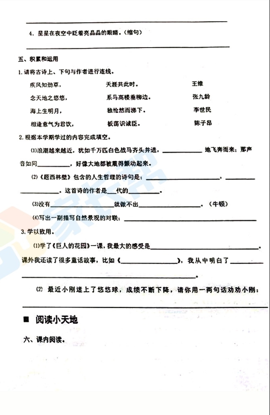 2017-2018济南天桥区四年级语文期末试题(2)