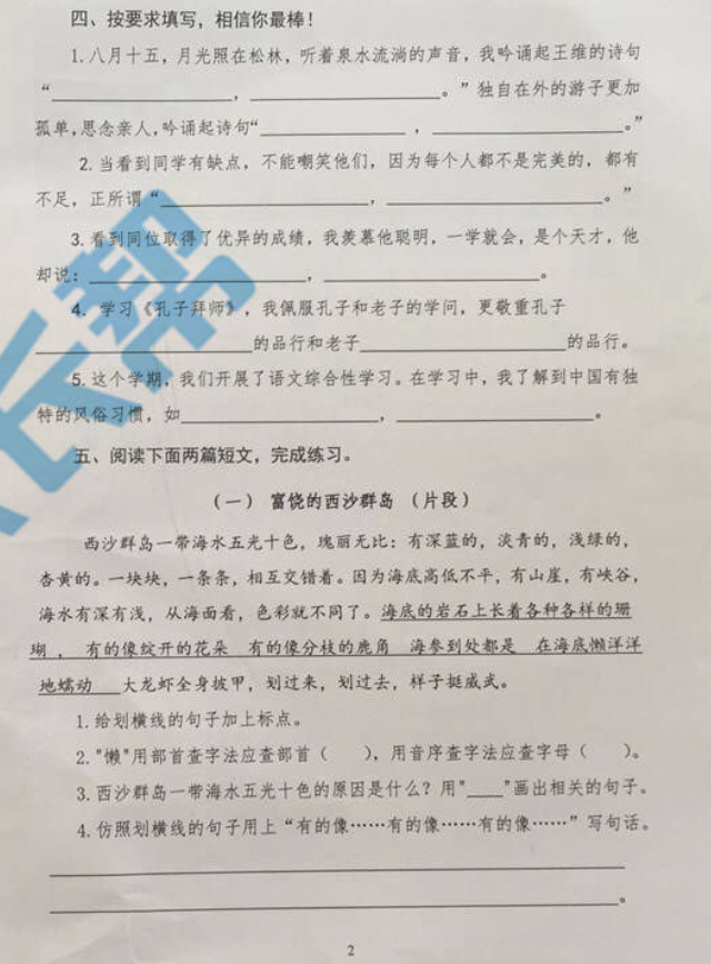 2017-2018济南历下区三年级语文期末试题A卷(2)