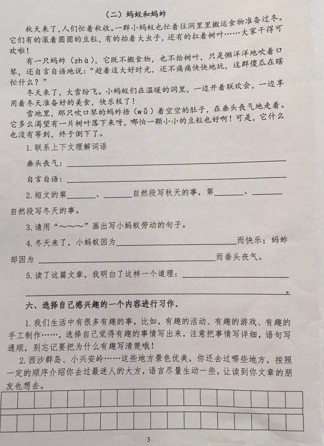 2017-2018济南历下区三年级语文期末试题A卷(3)