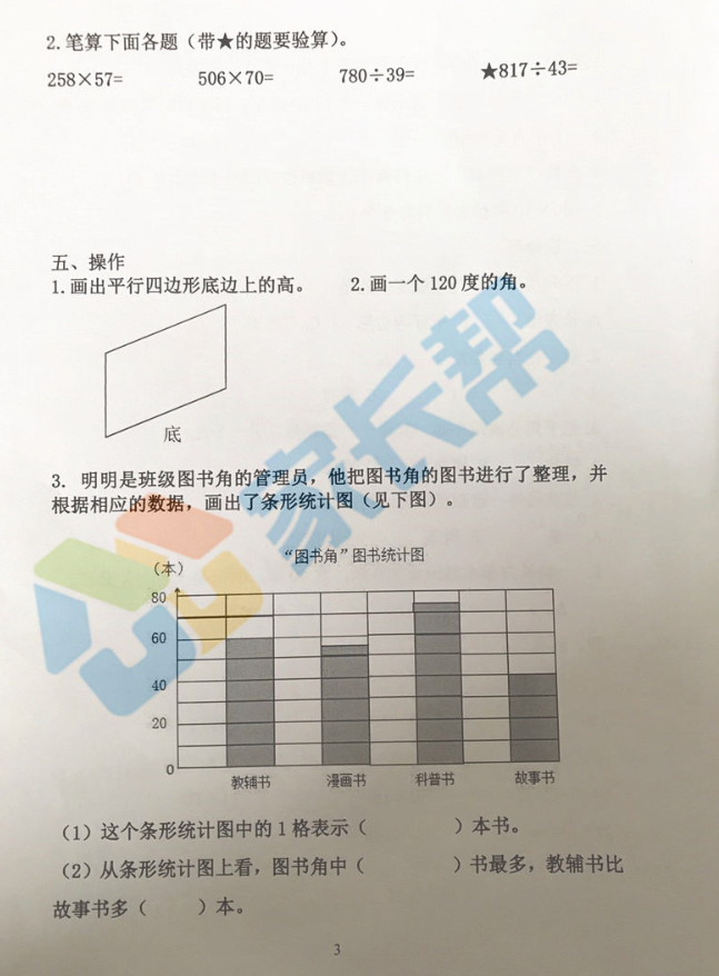 2017-2018济南历下区四年级数学期末试题B卷(3)