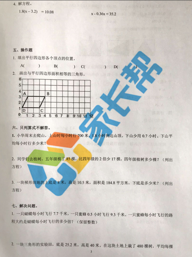 2017-2018济南历下区五年级数学期末试题(3)