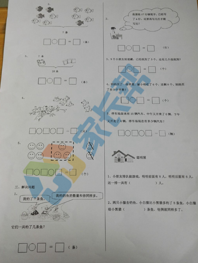 2017-2018济南市中区舜耕教育集团一年级数学期末试题(3)