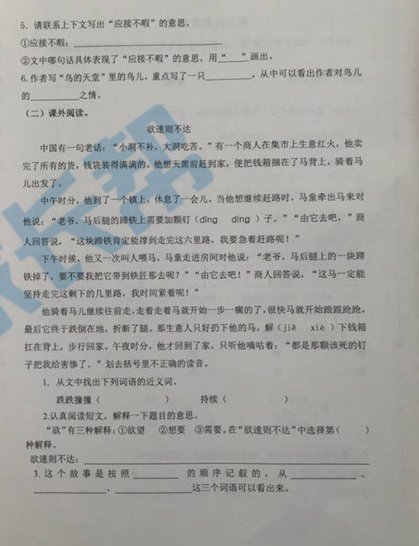 2017-2018济南市中区南上山教育四年级语文期末试题(4)