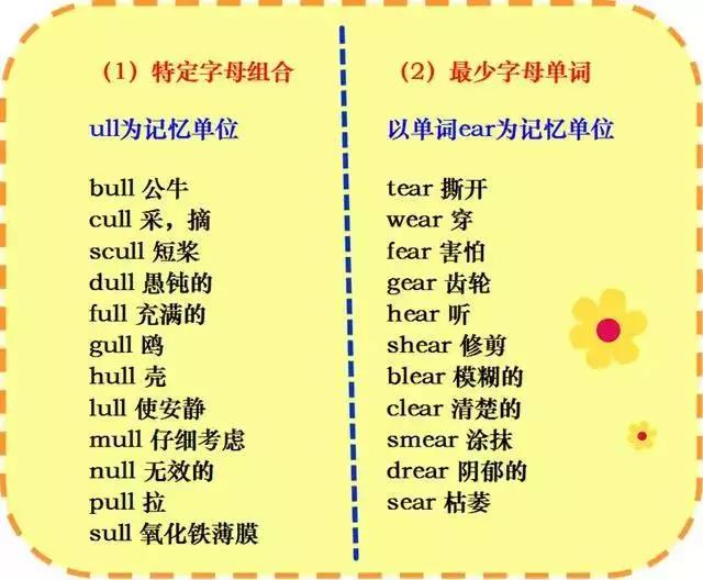 记忆单位,就是把某些特定的字母组合和最少字母的单词作为基础单位,进行系列对比,大面积扩展词汇量。