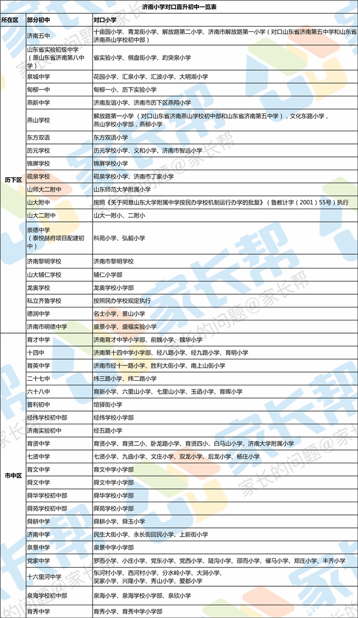 济南小升初对口直升初中全汇总