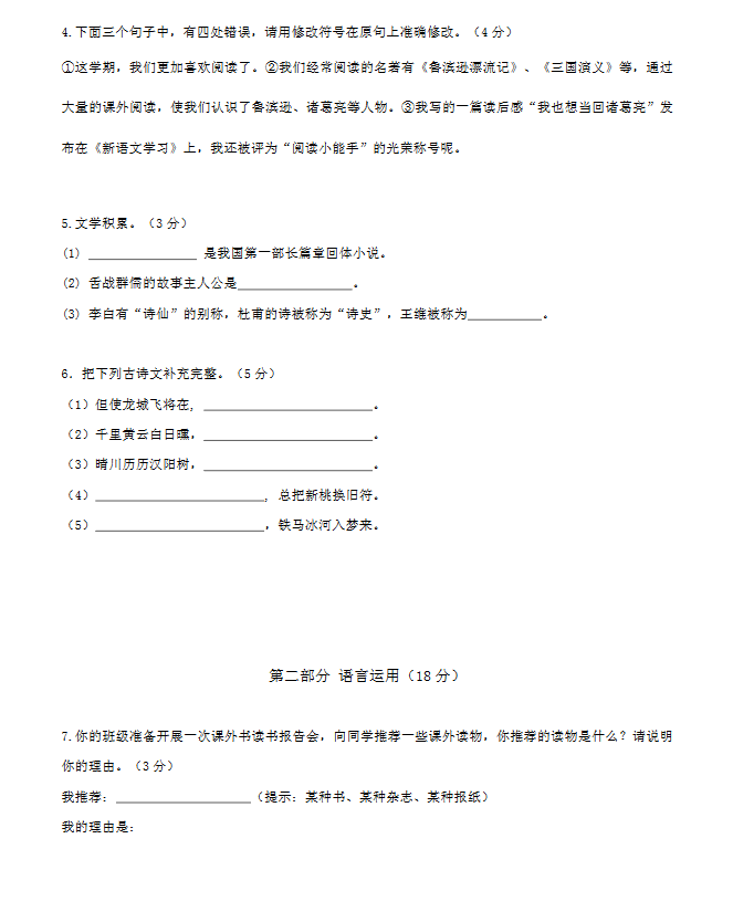 2018济南小升初语文模拟试卷(二)(2)