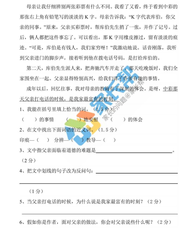 济南小学四年级下册期中语文测试卷(3)