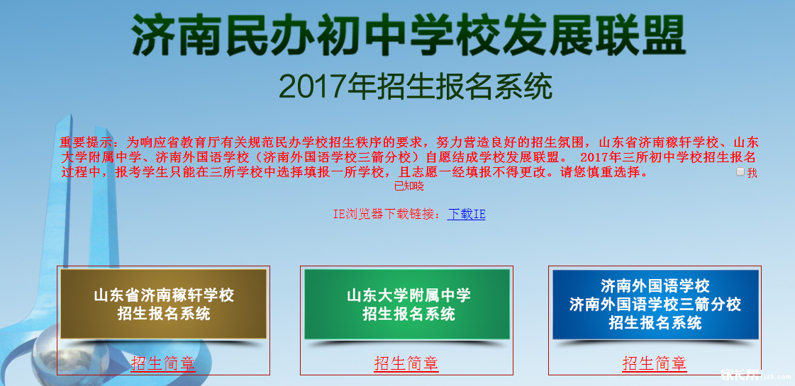为响应省教育厅有关规范民办学校招生秩序的要求,努力营造良好的招生氛围,山东省济南稼轩学校、山东大学附属中学、济南外国语学校(济南外国语学校三箭分校)自愿结成学校发展联盟。 2017年三所初中学校招生报名过程中,报考学生只能在三所学校中选择填报一所学校,且志愿一经填报不得更改。请您慎重选择。
