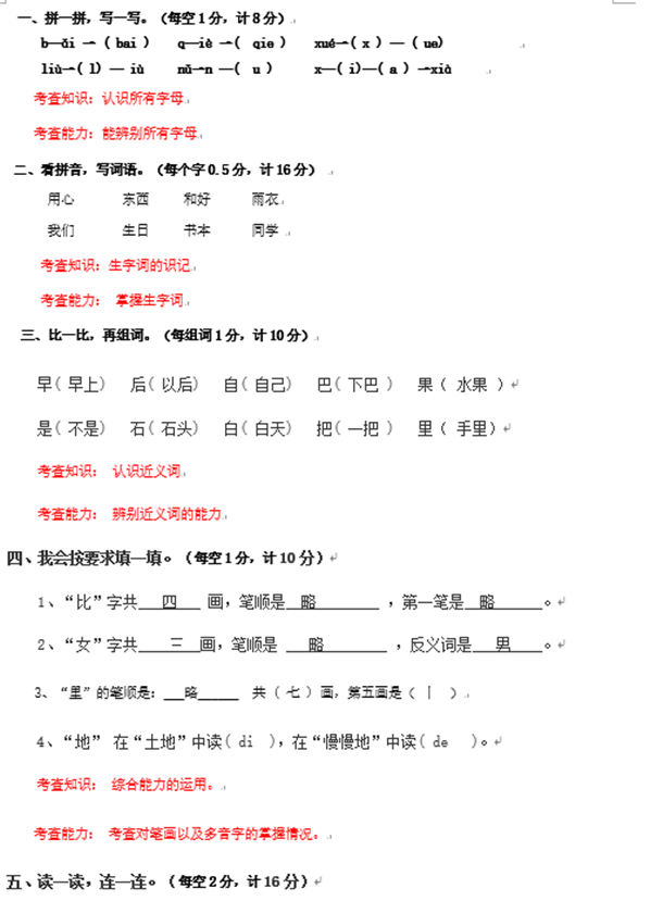 2019年济南市小学一年级语文期末模拟卷二(图片版)(3)