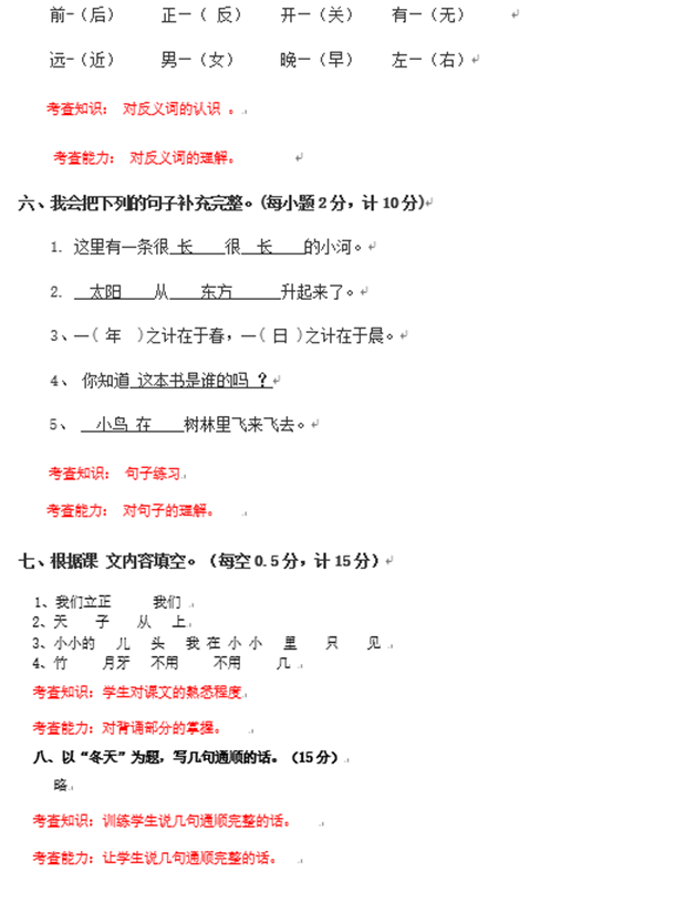 2019年济南市小学一年级语文期末模拟卷二(图片版)(4)