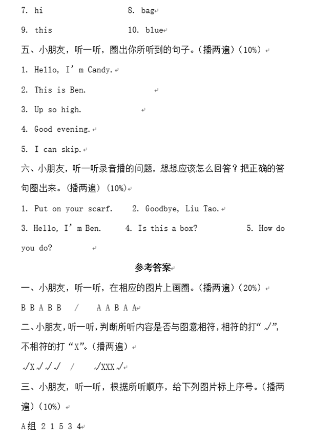 2019年济南市小学一年级英语期末模拟卷四(图片版)(6)