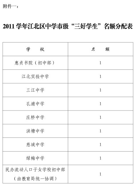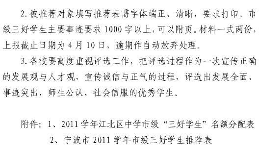 2011年宁波江北区市三好生推荐工作通知