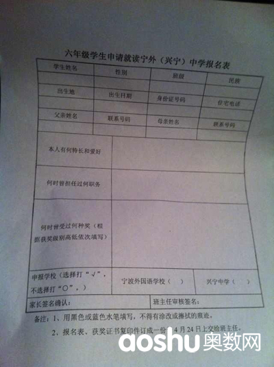 3.家长会中每个家长领取了一份宁外(兴宁)报名表,该表需上交哦,具体如下: