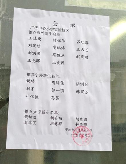 宁波奥数网5月8日讯 2013年宁波外国语学校和兴宁中学对区内招生采用推荐。宁波奥数网将开始陆续整理公布市区各小学的推荐名单,现将广济中心小学实验校区2013年海外、宁外、兴宁中学推荐学生名单进行整理公布,望大家知晓。
