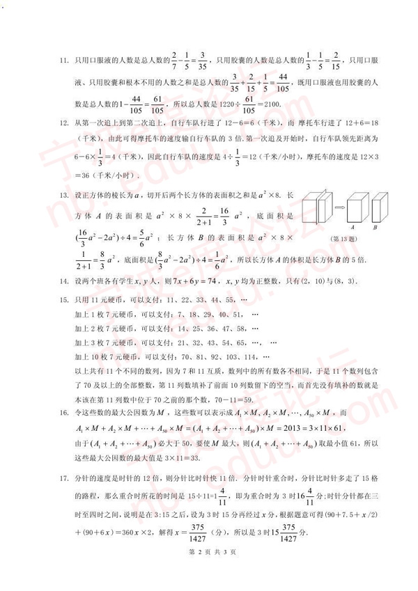 2013年第四届睿达杯数学竞赛六年级二试答案(A卷)(2)
