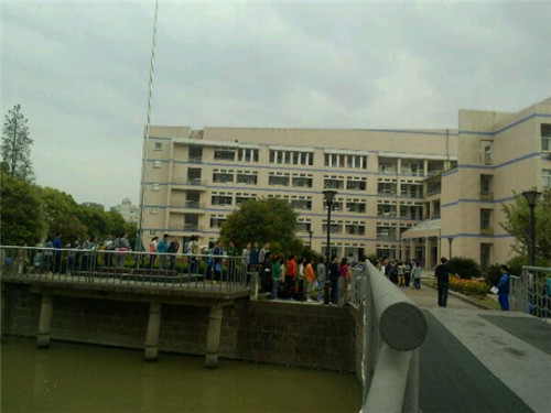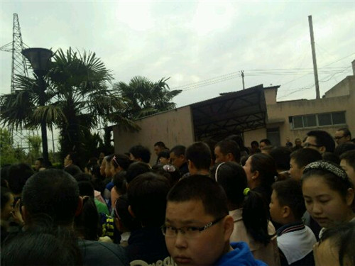 上图为孩子们在操场排队等候,分批进入报名面谈现场