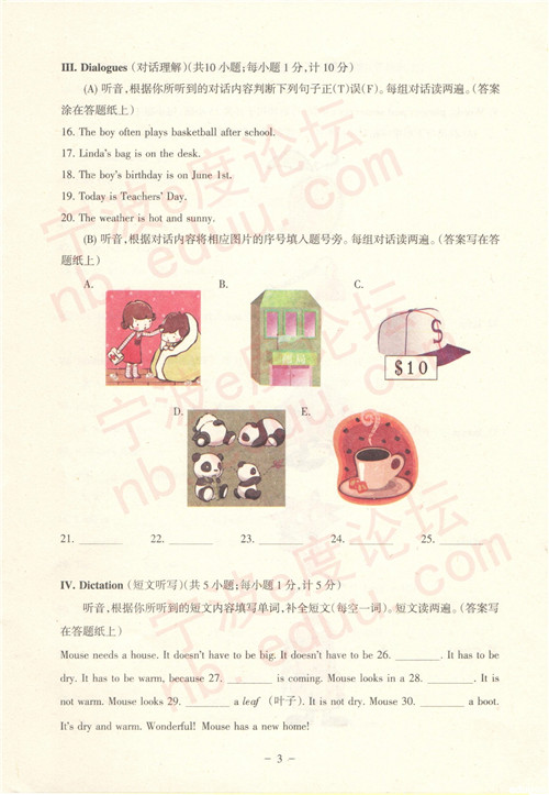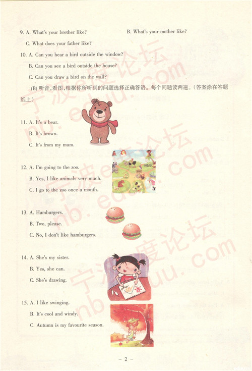2014年全国小学生英语能力竞赛初赛低年级组试题(2)