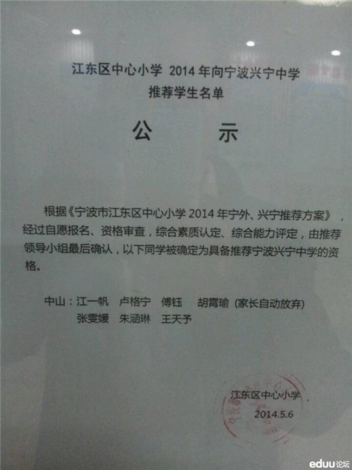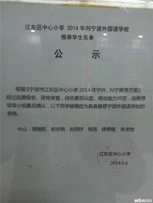 【查看原帖并参与讨论:江东区中心小学2014年向宁外、兴宁推荐学生名单(中山校】