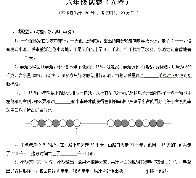 第三届海峡两岸数学邀请赛地方复赛试题(六年级)