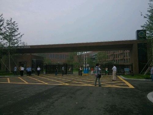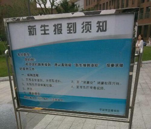 宁波奥数网 宁波市鄞州蓝青学校2014年初一新生报到于6月29日举行,家长带学生到校报到购买校服,学生进报告厅听报告,家长在外等候。