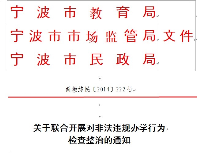 宁波奥数网讯 宁波各县(市)区教育局、市场监管局、民政局联合开展对非法违规办学行为,并检查整治,已下发通知。
