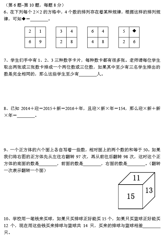 第十四届小机灵杯四年级初赛真题及答案(2)