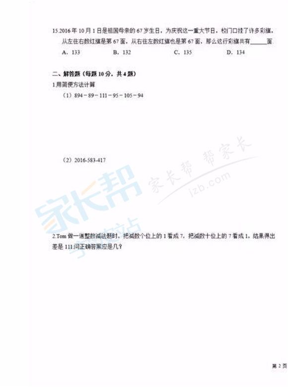 2016第十届IYMC国少赛初赛三年级真题及答案(3)