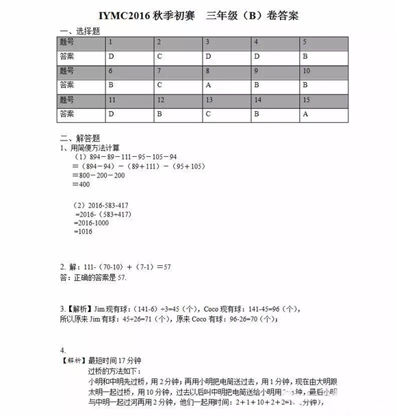 2016第十届IYMC国少赛初赛三年级真题及答案(5)
