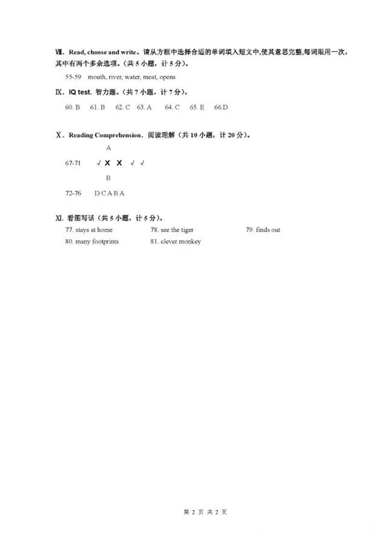2016第七届睿达杯一试宁波三年级英语答案(2)