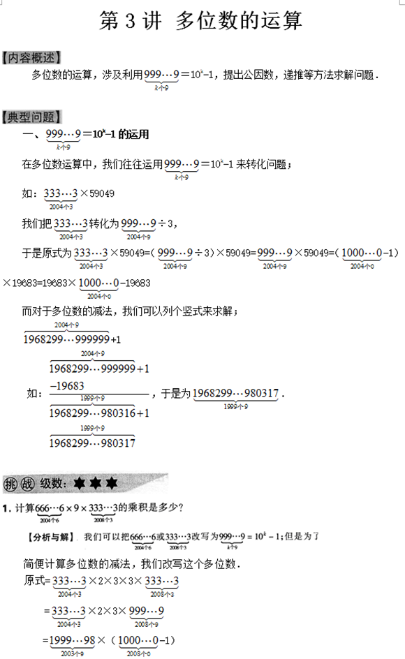 宁波小学奥数六年级竞赛必考:多位数的运算