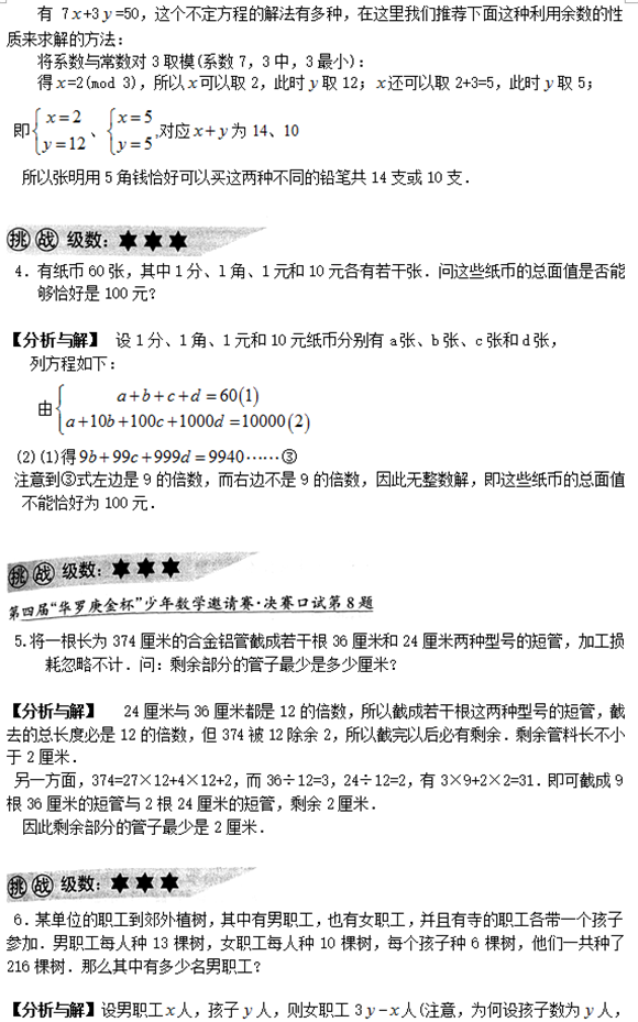 宁波小学奥数六年级:不定方程与整数拆分(2)