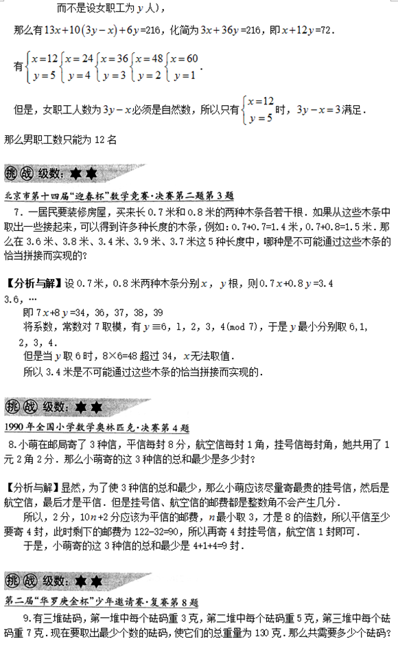 宁波小学奥数六年级:不定方程与整数拆分(3)
