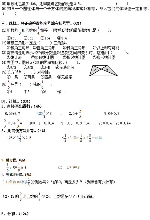 2017宁波小升初数学复习模拟题(三)(2)