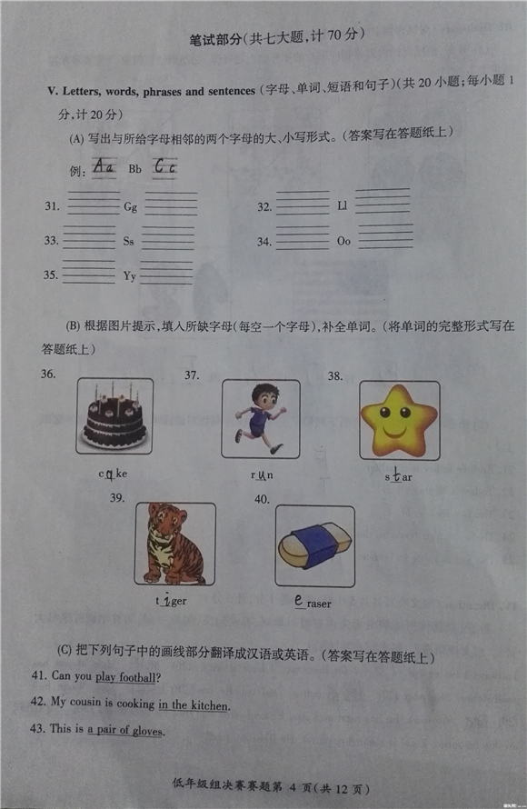 2017年全国小学英语竞赛低年级决赛试题(4)