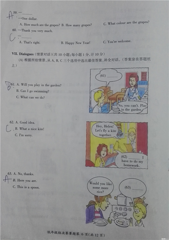 2017年全国小学英语竞赛低年级决赛试题(6)