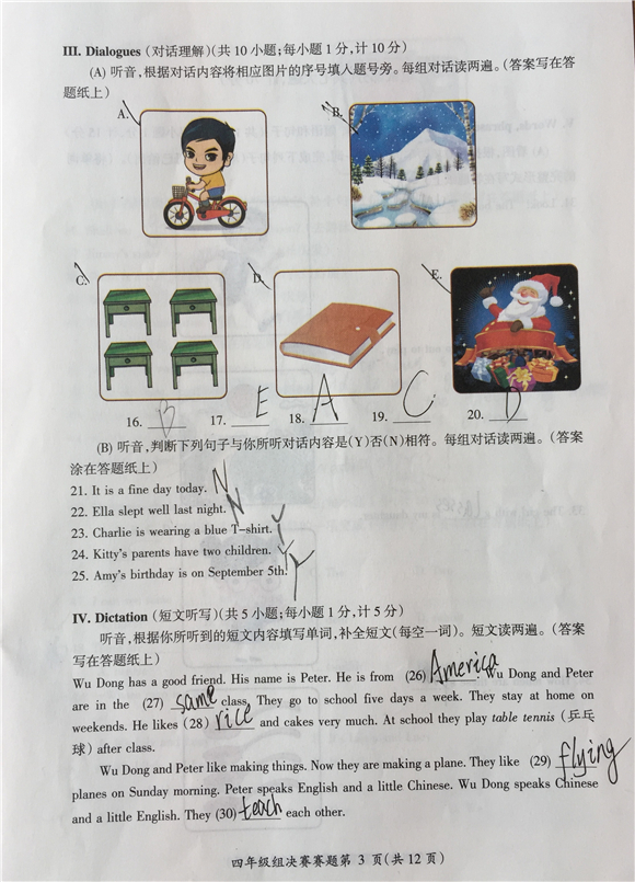 2017年全国小学英语竞赛四年级决赛试题(3)