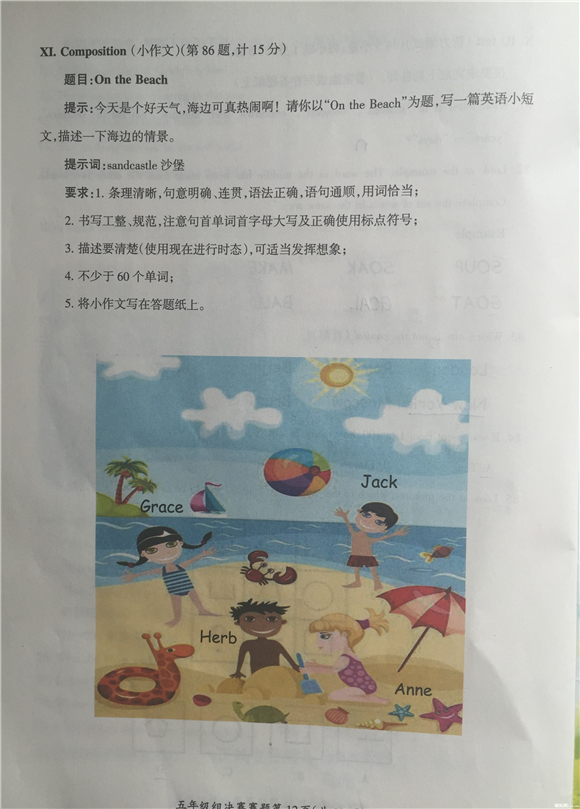2017年全国小学英语竞赛五年级决赛试题(12)
