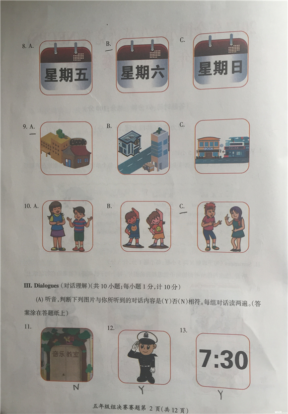2017年全国小学英语竞赛五年级决赛试题(2)